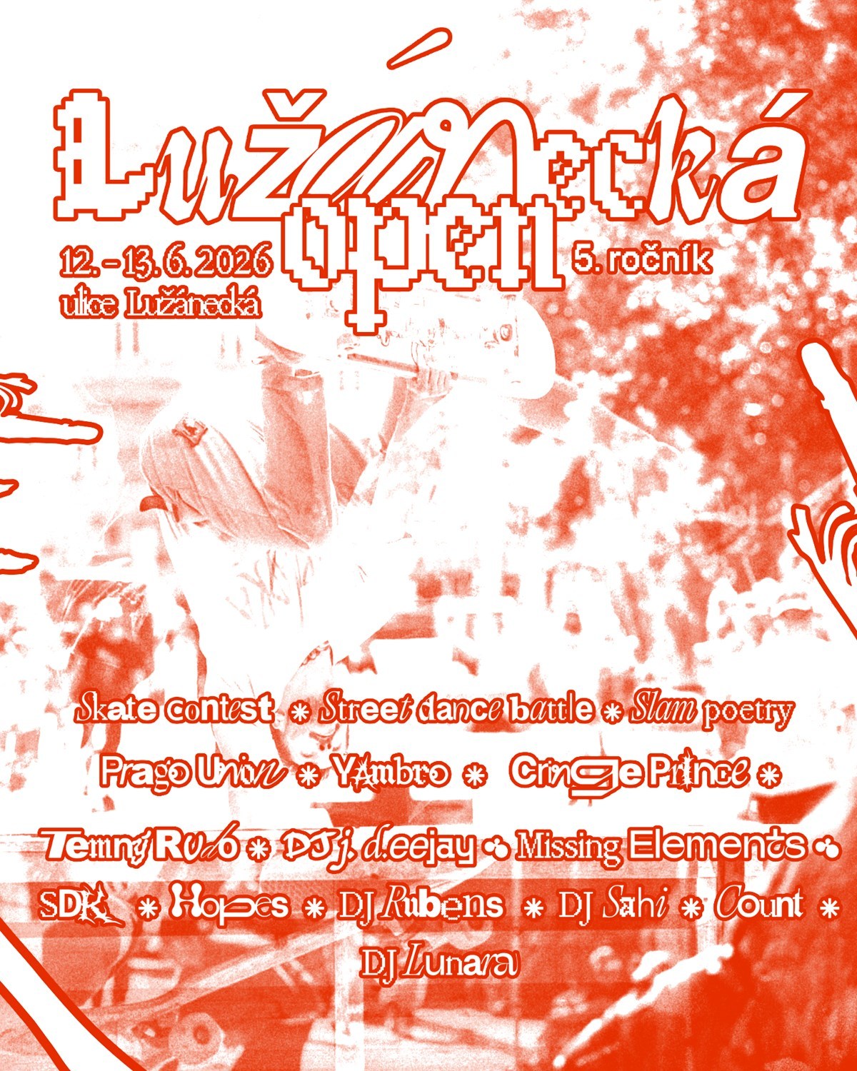 Skejtové závody a workshopy, našlapanej hudební program, diskusní panel, slam poetry a street dance battle, to vše tento rok na ulici Lužánecká!