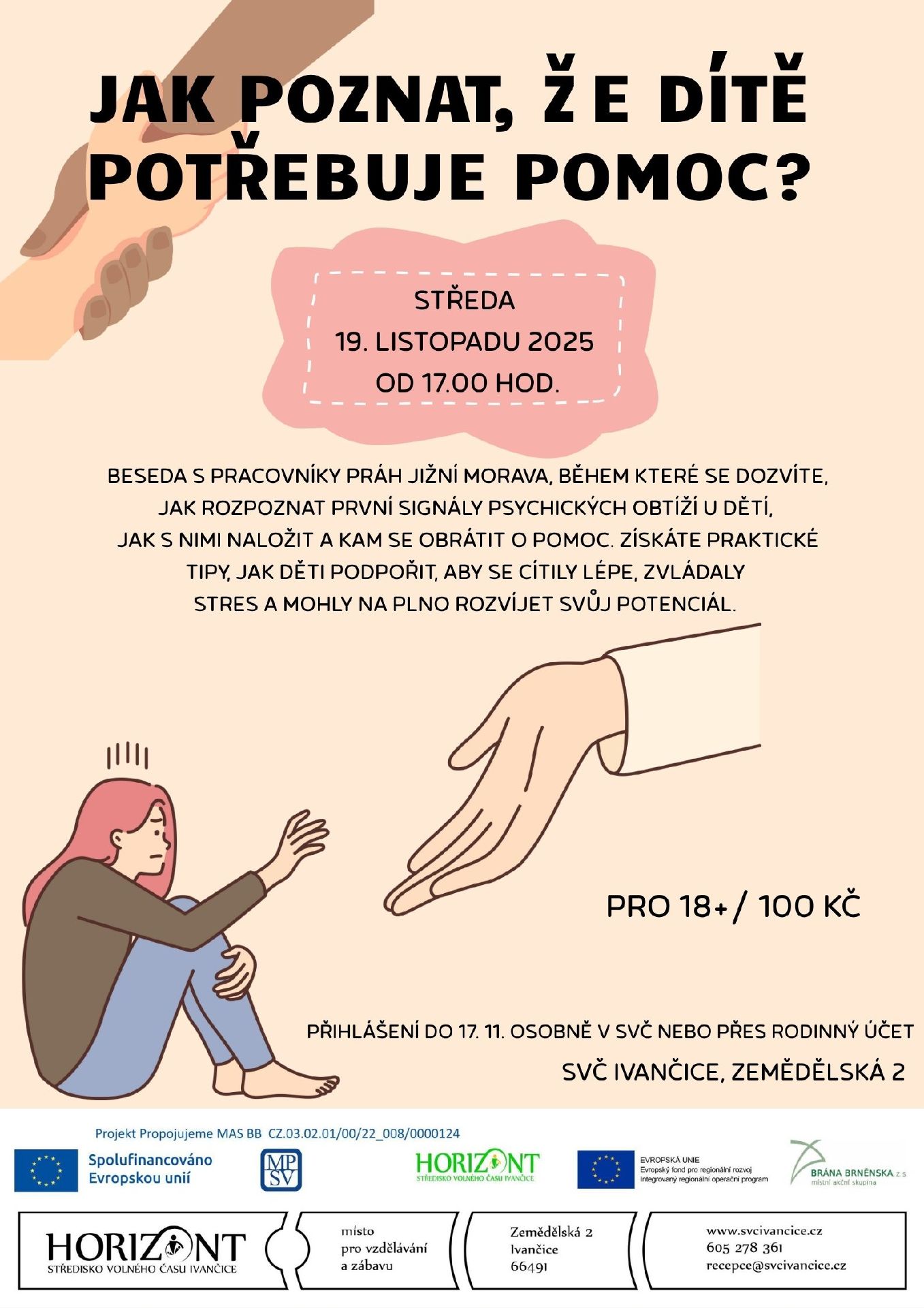 JAK POZNAT, ŽE DÍTĚ POTŘEBUJE POMOC? - středa 19. listopadu od 17.00 hod.
