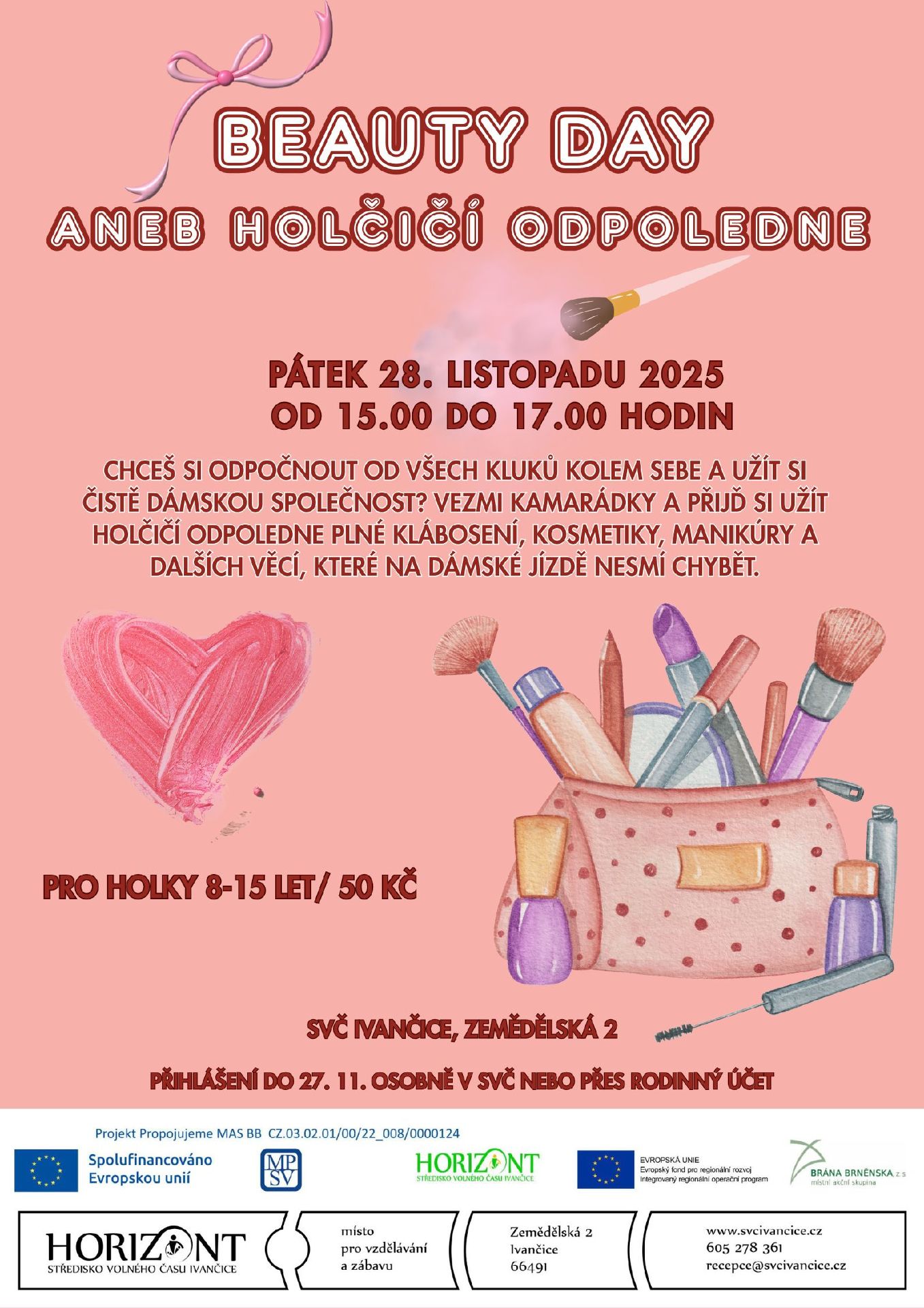 BEAUTY DAY aneb HOLČIČÍ ODPOLEDNE - pátek 28. listopadu od 15.00 do 17.00 hodin
