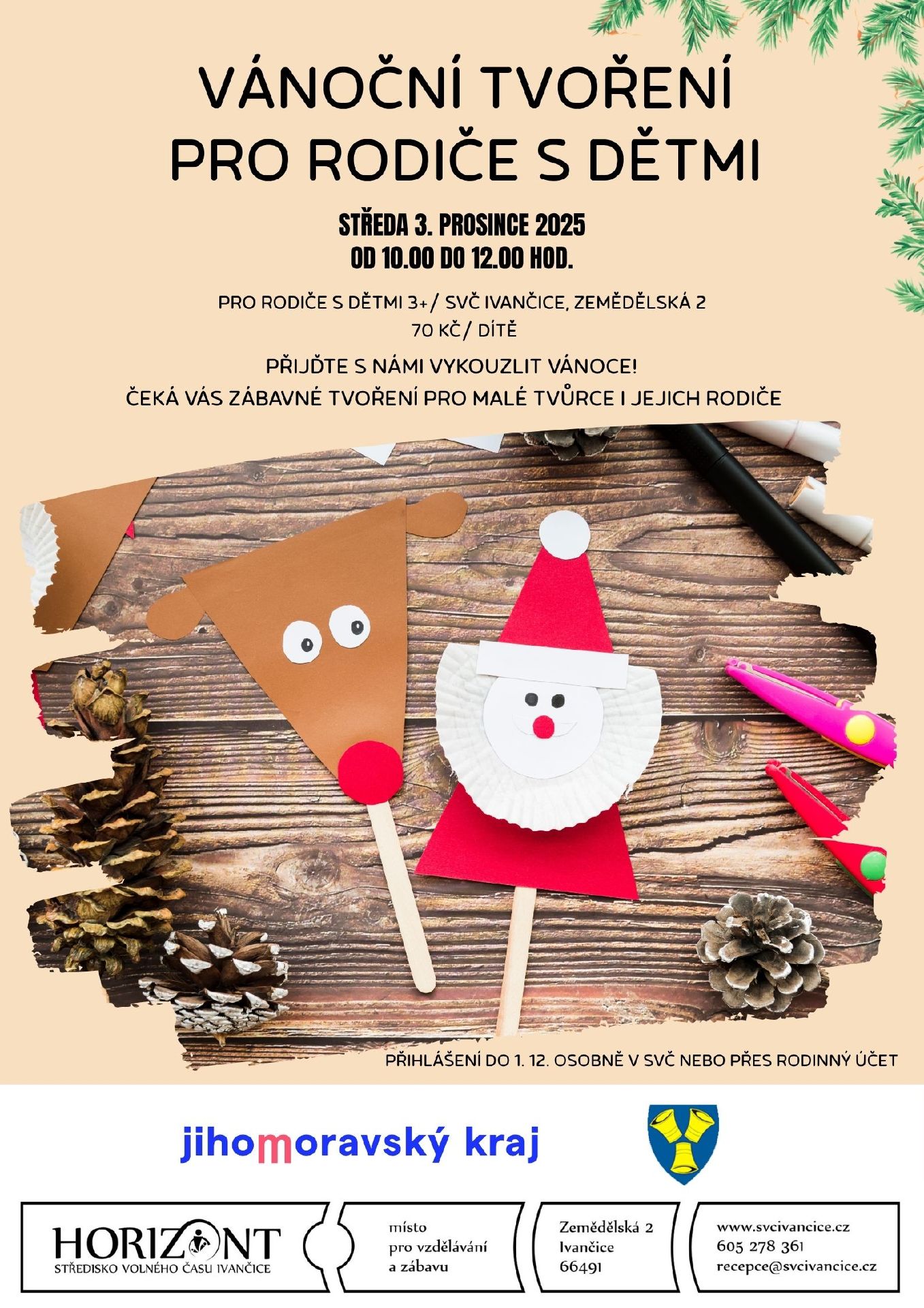 VÁNOČNÍ TVOŘENÍ PRO RODIČE S DĚTMI - středa 3. prosince od 10.00 do 12.00 hod.