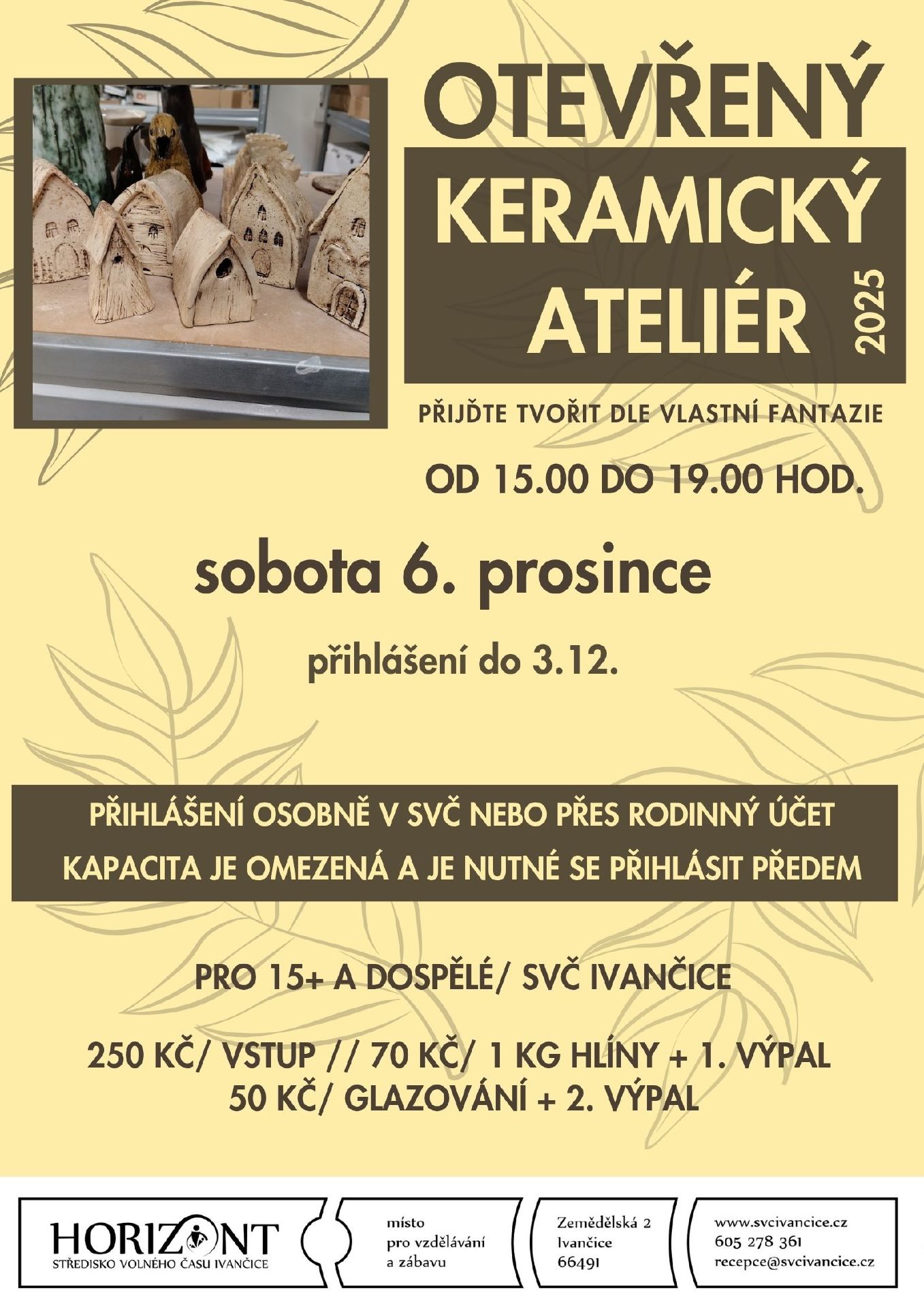 OTEVŘENÝ KERAMICKÝ ATELIÉR - sobota 6. prosince od 15.00 do 19.00 hodin