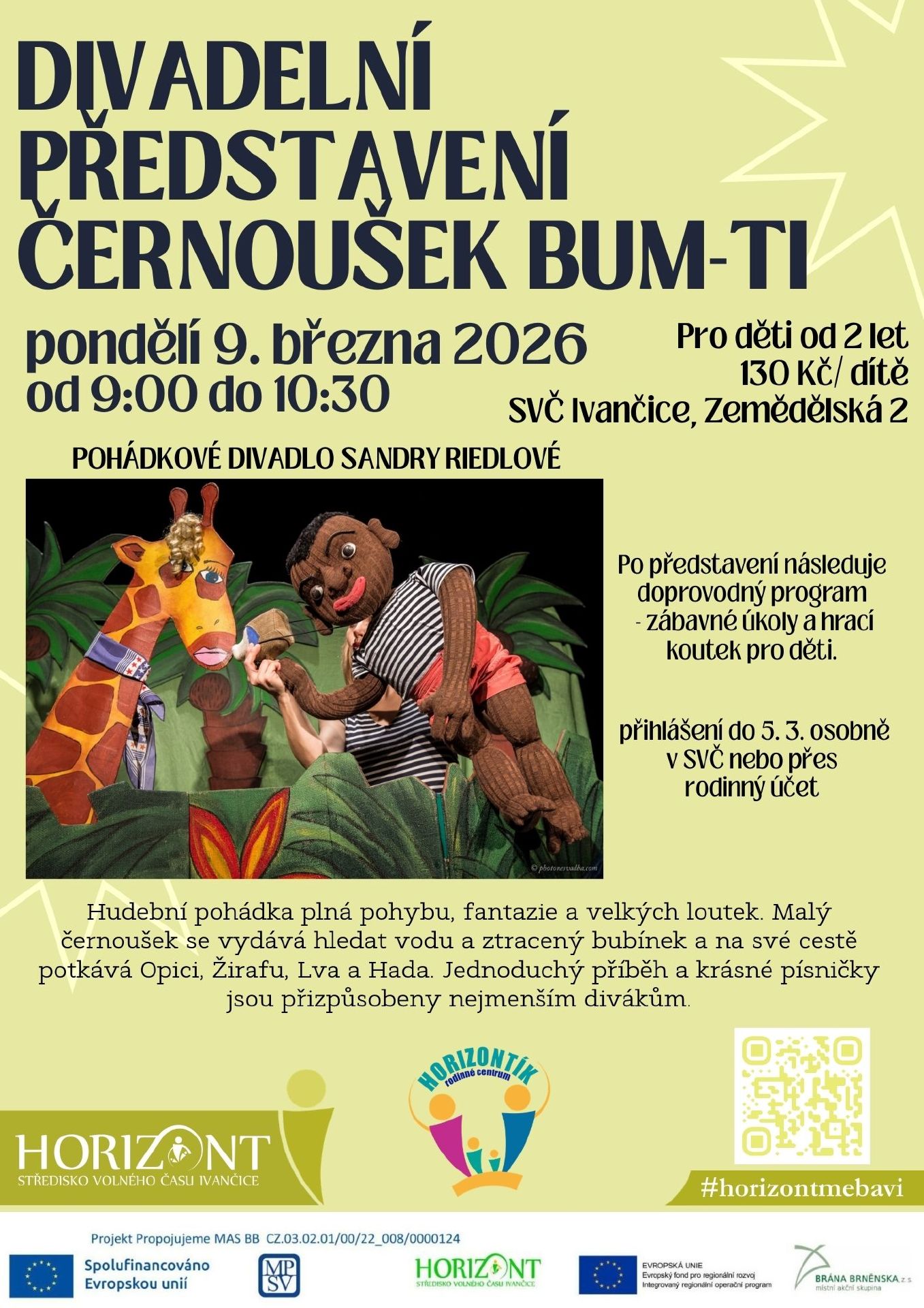 Divadelní představení ČERNOUŠEK BUM-TI - pondělí 9. března od 9.00 do 10.30 hodin