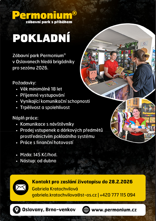 Pro sezónu 2026 hledáme spolehlivé brigádníky na pokladnu zábavního parku Permonium®.