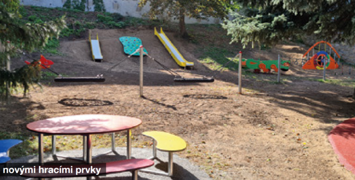 Instalace herních prvků na dětském hřišti za hasičskou zbrojnicí byla dodavatelskou společností Hřiště 8D, s. r. o. dokončena.
